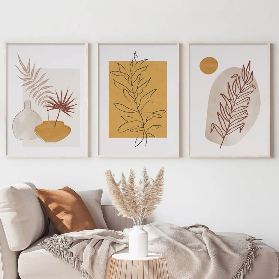 Abstract Mustard Leaf Boho Wall Art Canvas Print