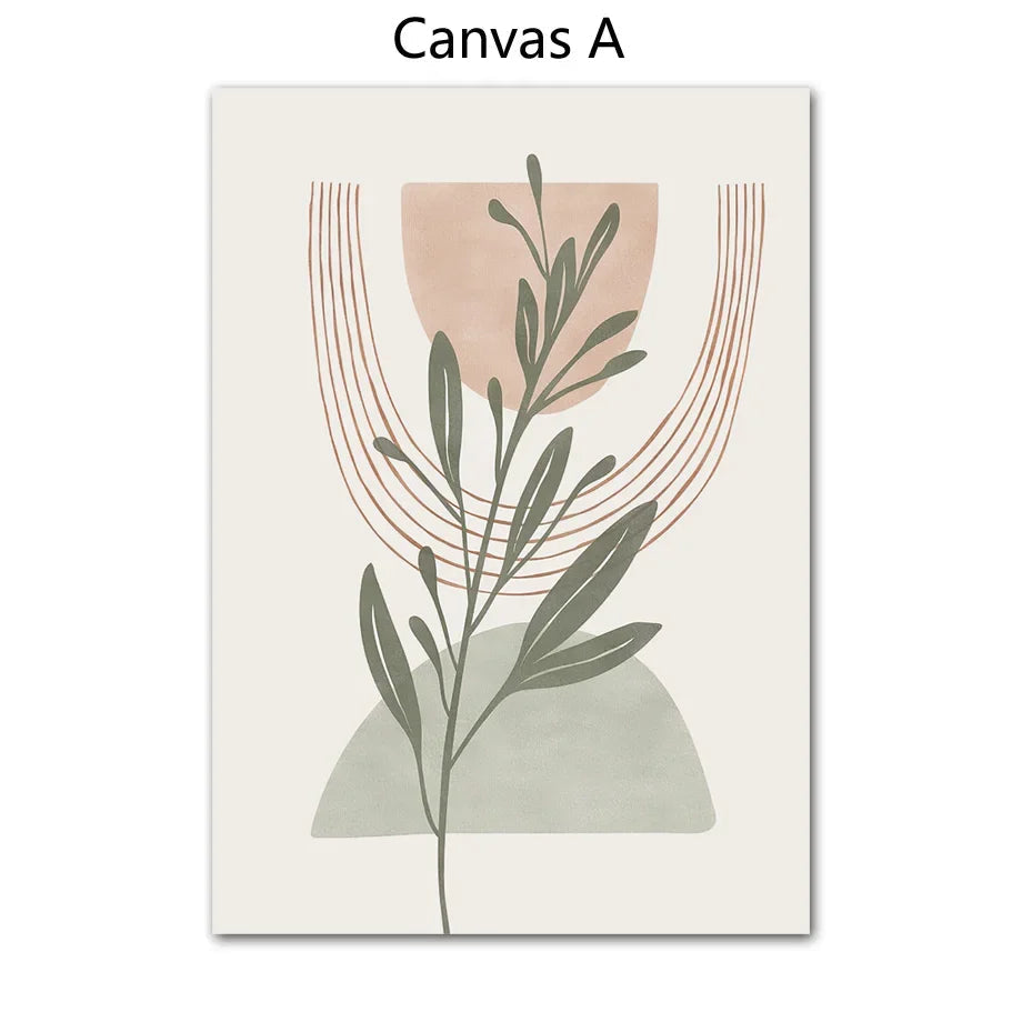Boho Abstract Line Leaves - Canvas Print Wall Art
