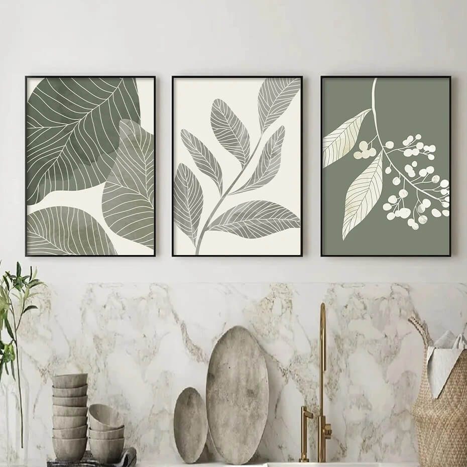 Tropical Green Leaves Boho Canvas Prints Wall Art